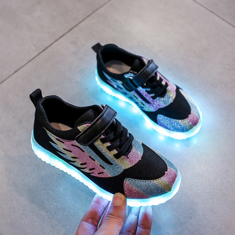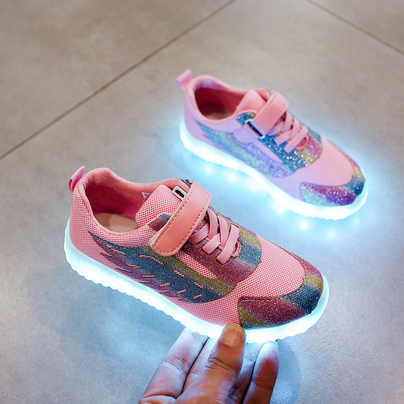 Αθλητικά παπούτσια με φωτιζόμενη σόλα και λαμπερό γκλίτερ σχέδιο που ξεχωρίζει. Συνδυάζουν άνεση και εντυπωσιακό στυλ, ιδανικά για καθημερινές δραστηριότητες και παιχνίδι.