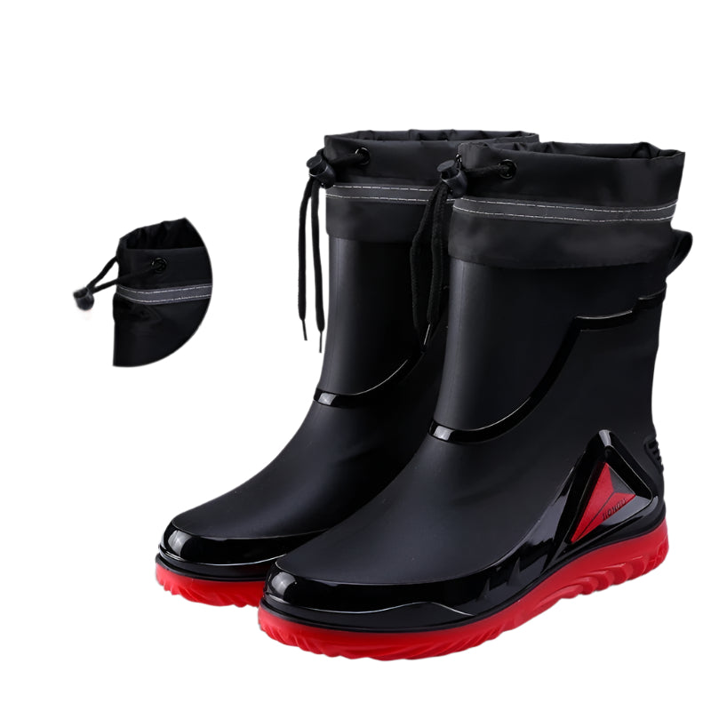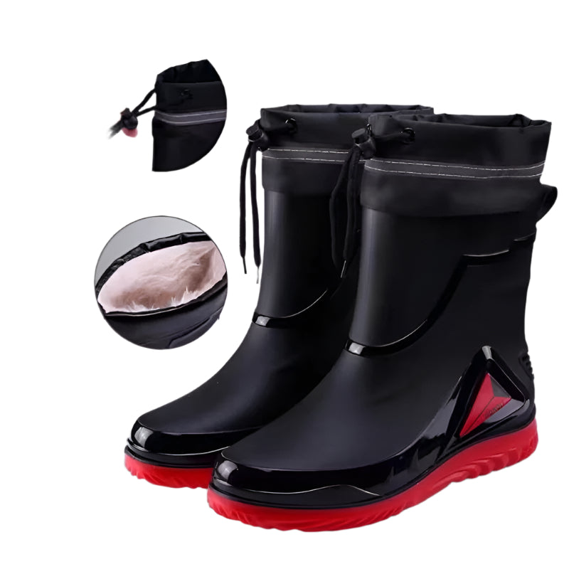 Πρακτικές, ανθεκτικές και ευέλικτες, αυτές οι ανδρικές γαλότσες προσφέρουν αξιόπιστη προστασία από τη βροχή και τη λάσπη σε κάθε είδους εξωτερική δραστηριότητα. Το κορδόνι στο επάνω μέρος εξασφαλίζει εφαρμογή που προσαρμόζεται και εμποδίζει την είσοδο του νερού, ενώ η αντιολισθητική σόλα προσφέρει σιγουριά σε ολισθηρές επιφάνειες. Διατίθενται σε τέσσερις εκδοχές, με ή χωρίς εσωτερική επένδυση για τις κρύες μέρες.