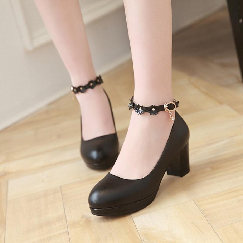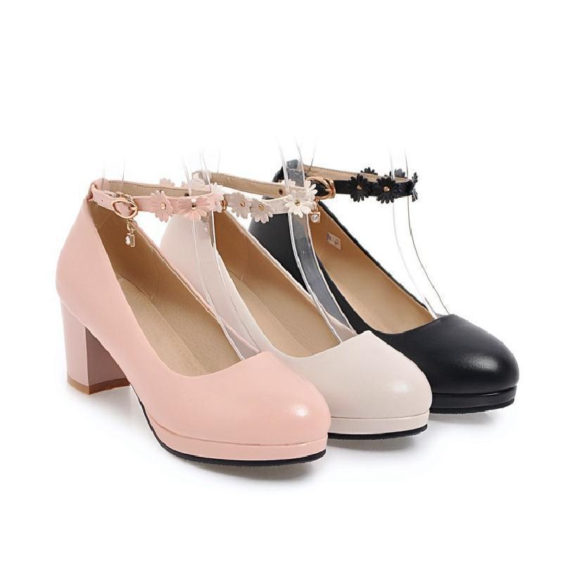 Κλασικές γόβες με χαμηλό τακούνι, ιδανικές για κομψές εμφανίσεις με άνεση και στυλ. Διαθέτουν λουράκι στον αστράγαλο με διακοσμητικά λουλουδάκια και μεταλλική αγκράφα που ενισχύει τη θηλυκή τους αισθητική. Το στρογγυλεμένο μπροστινό μέρος εξασφαλίζει άνετη εφαρμογή ενώ η σταθερή σόλα παρέχει σιγουριά σε κάθε βήμα.