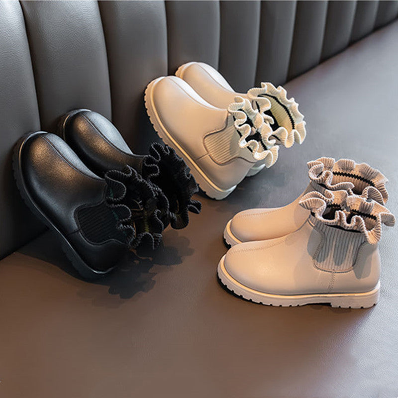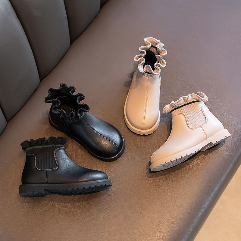 Πρωτότυπα μποτάκια με girly λεπτομέρεια βολάν στο επάνω μέρος και ελαστικό πλεκτό πλαϊνό για ευκολότερη εφαρμογή και ξεχωριστό στυλ. Ο συνδυασμός της άνεσης με τη μόδα τα καθιστά ιδανικά για καθημερινές και πιο ξεχωριστές εμφανίσεις.