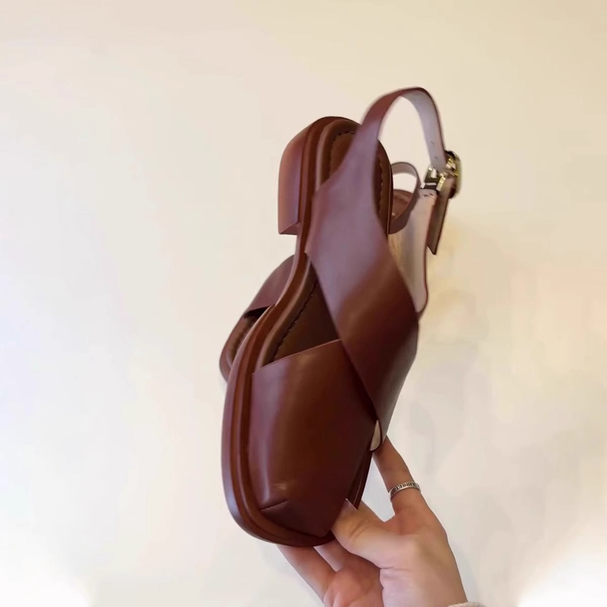 Δερμάτινα Σανδάλια με Σταυρωτά Λουράκια & Τετράγωνη Μύτη