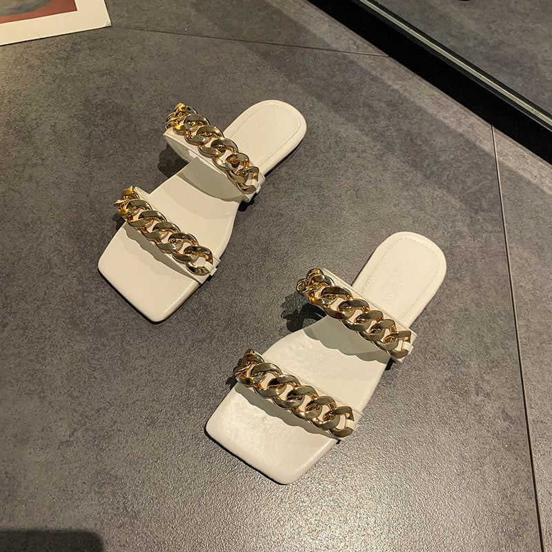 Γυναικείες Παντόφλες με Χρυσή Αλυσίδα & Τετράγωνη Μύτη