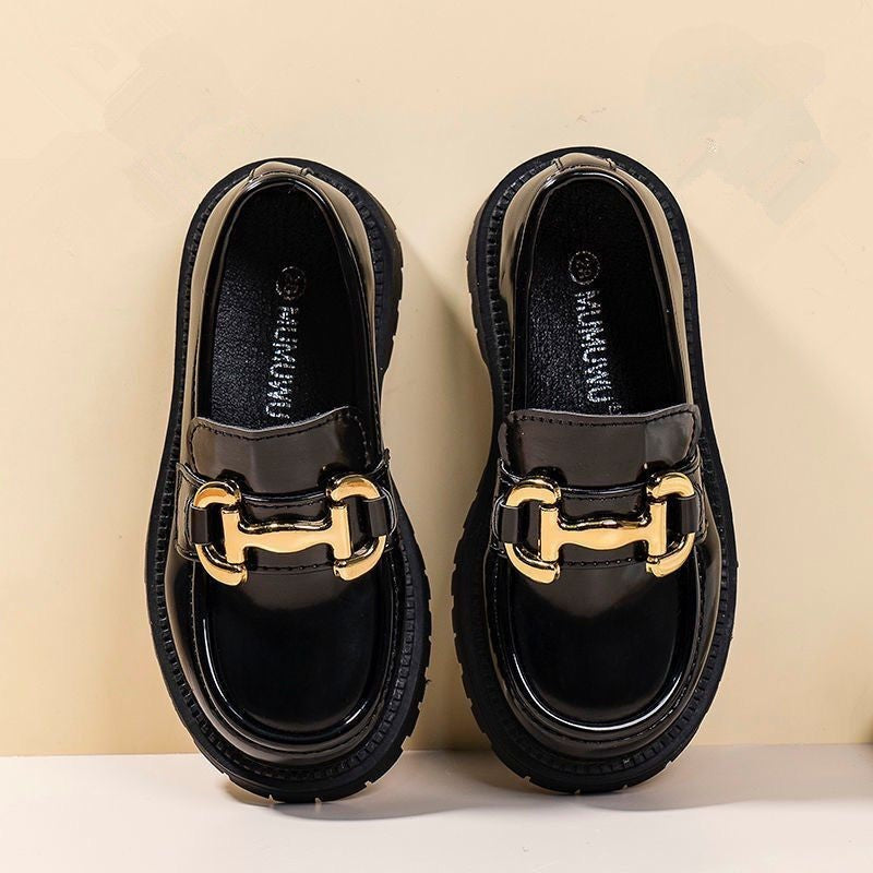 Στιλάτα μοκασίνια με λουστρίνι υφή και εντυπωσιακή αγκράφα σε χρυσό τόνο στο επάνω μέρος. Ο συνδυασμός της γυαλιστερής υφής με τη chunky σόλα προσφέρει μια μοντέρνα εμφάνιση με σταθερότητα στο περπάτημα.
