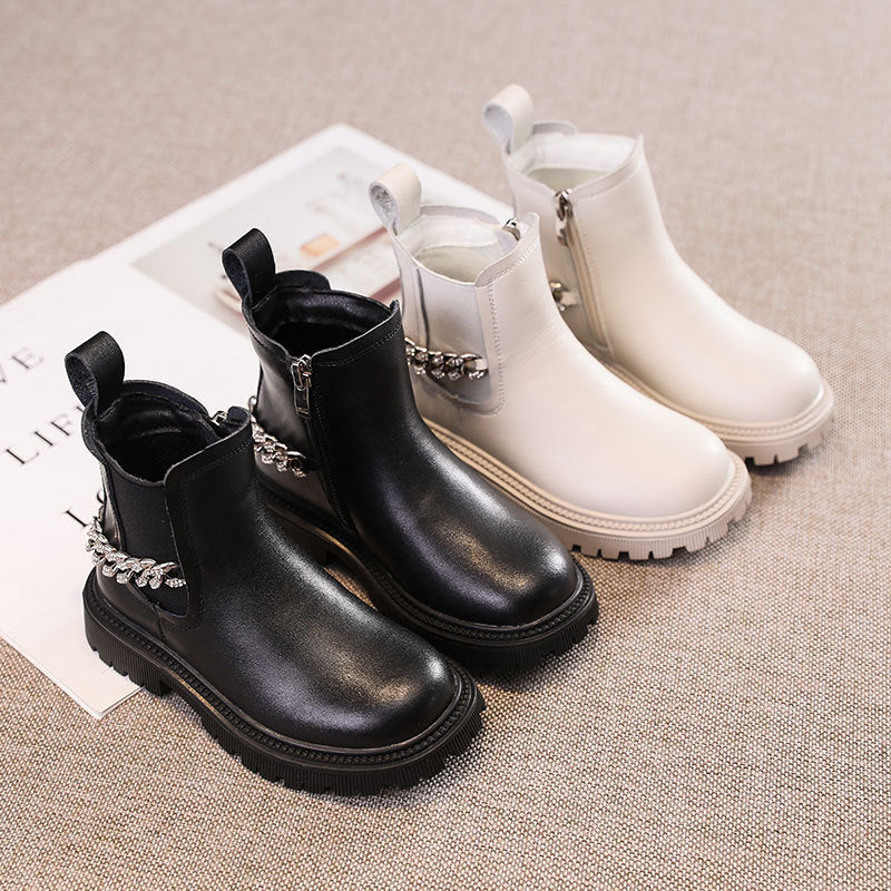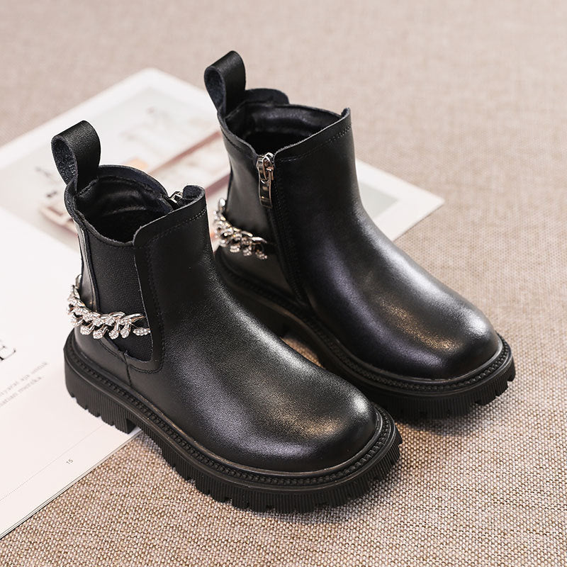 Κομψά μποτάκια με διακοσμητική αλυσίδα στο πλάι, ιδανικά για ιδιαίτερες εμφανίσεις. Κατασκευασμένα από δερματίνη με μαλακή υφή, συνδυάζουν άνεση και στυλ, ενώ το εσωτερικό τους προσφέρει ζεστασιά τις κρύες μέρες του χειμώνα. Το πλάι διαθέτει φερμουάρ για εύκολη εφαρμογή.