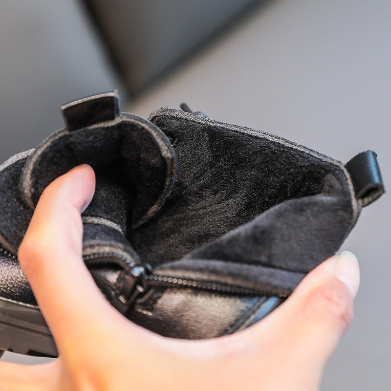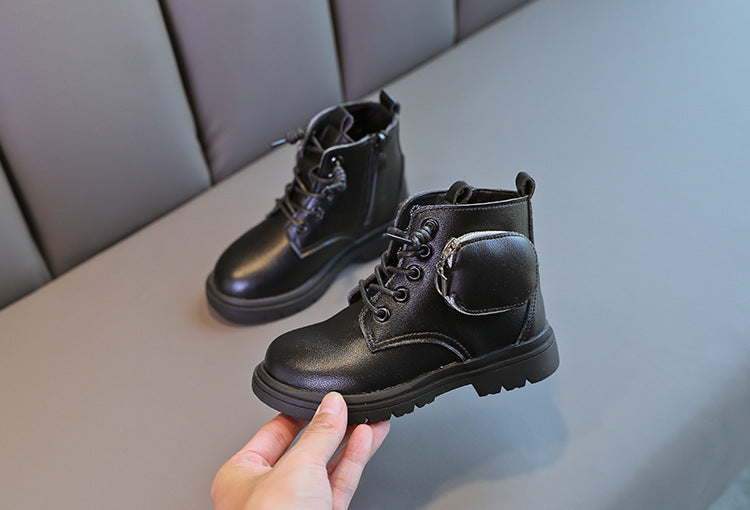 Μοντέρνα μποτάκια με κορδόνια και πρακτικό φερμουάρ, ιδανικά για χειμερινές εμφανίσεις. Διαθέτουν διακοσμητική θήκη στο πλάι με μεταλλική λεπτομέρεια, προσθέτοντας ιδιαίτερο χαρακτήρα στο σχέδιο. Η σόλα είναι αντιολισθητική και κατάλληλη για κάθε δραστηριότητα.