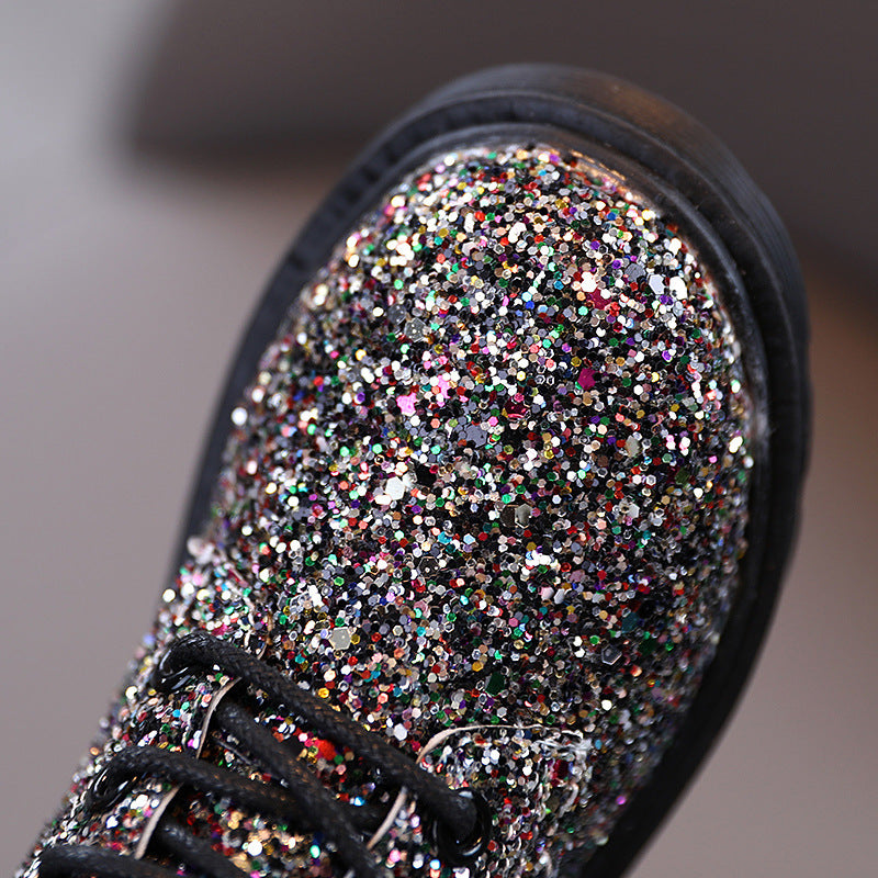 Μποτάκια με Gliter, Κορδόνια & Πλαϊνό Φερμουάρ