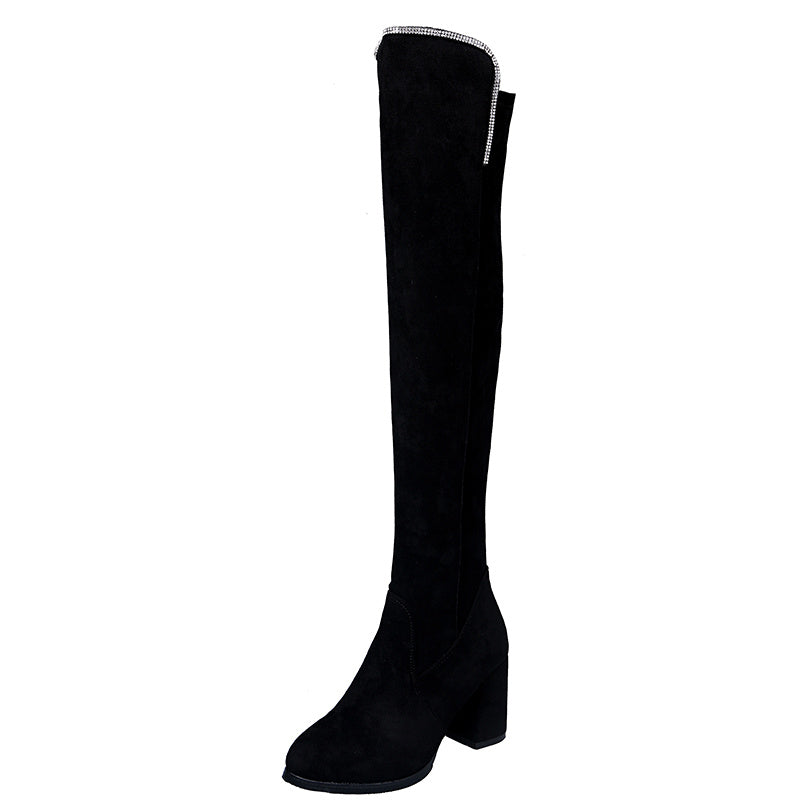 Μπότες Over-the-Knee με Χοντρό Τακούνι & Στρας στο Γόνατο