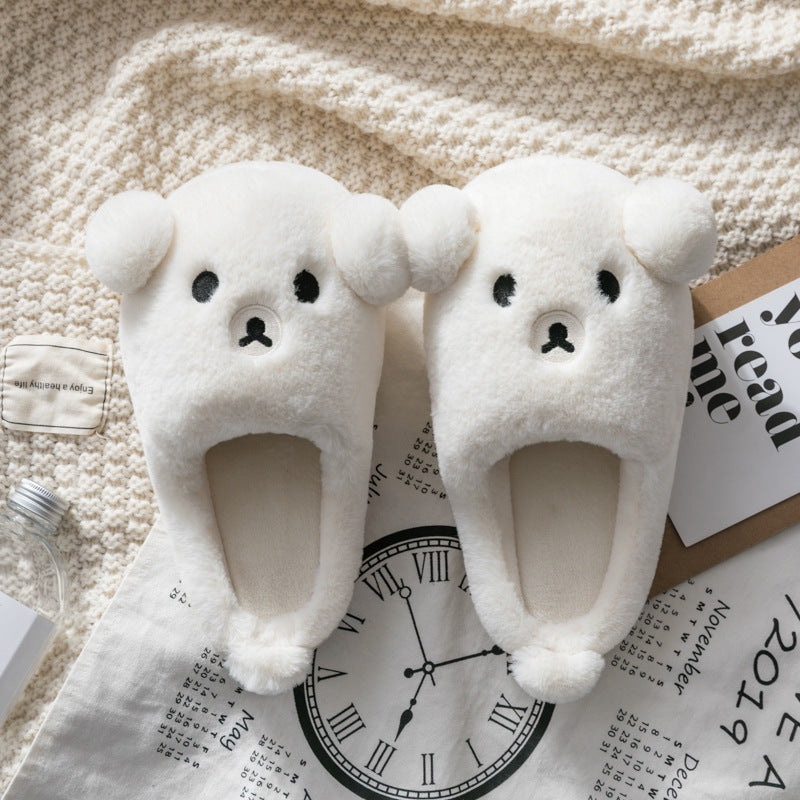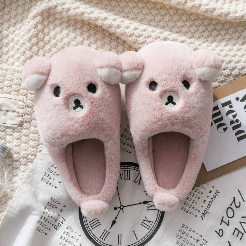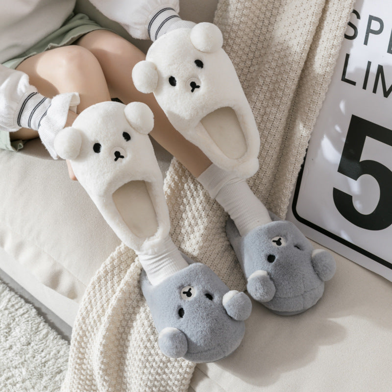 Απαλές και ζεστές χειμερινές παντόφλες με χαριτωμένο σχέδιο αρκουδάκι στο μπροστινό μέρος. Διαθέτουν αφράτη υφή, αυτιά και μύτη που προσθέτουν παιχνιδιάρικη διάθεση, ενώ η εσωτερική επένδυση εξασφαλίζει άνεση και ζεστασιά στο περπάτημα.