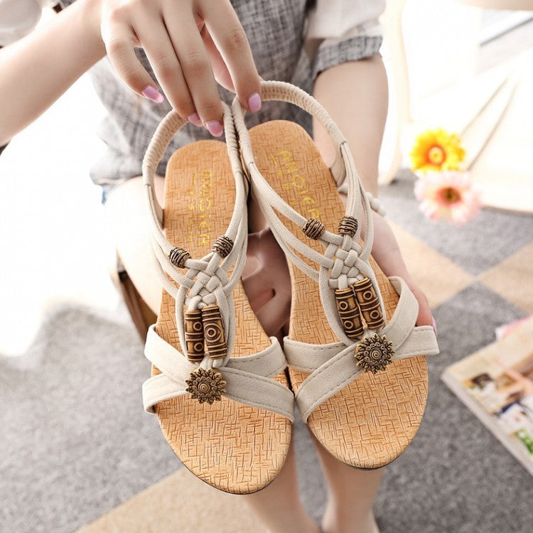 Αναδείξτε το καλοκαιρινό σας στυλ με αυτά τα κομψά strappy σανδάλια που συνδυάζουν μοναδικά πλεξούδες, χάντρες και μεταλλικά στοιχεία. Το σχέδιο αγκαλιάζει το πέλμα με άνεση, ενώ το λαστιχένιο πίσω μέρος προσφέρει σταθερότητα στην εφαρμογή. Ιδανικά για βόλτες, casual εμφανίσεις και καθημερινή χρήση με έμφαση στη λεπτομέρεια.