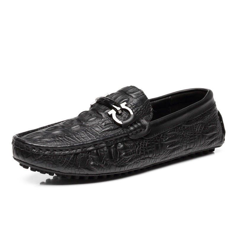 Αναβαθμίστε το στυλ σας με αυτά τα κομψά μοκασίνια που ξεχωρίζουν για την πολυτελή εμφάνισή τους. Το ανάγλυφο φινίρισμα θυμίζει υφή δέρματος κροκό, προσδίδοντας μια ξεχωριστή και δυναμική αίσθηση. Η μεταλλική λεπτομέρεια στο κουντεπιέ ενισχύει τον μοντέρνο χαρακτήρα, ενώ η μαλακή εσωτερική επένδυση και η αντιολισθητική σόλα προσφέρουν άνεση και σταθερότητα όλη μέρα.