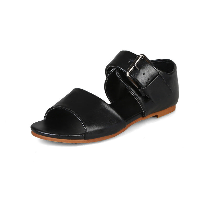 Δερμάτινα Σανδάλια με Φαρδύ Λουράκι & Μεταλλική Αγκράφα