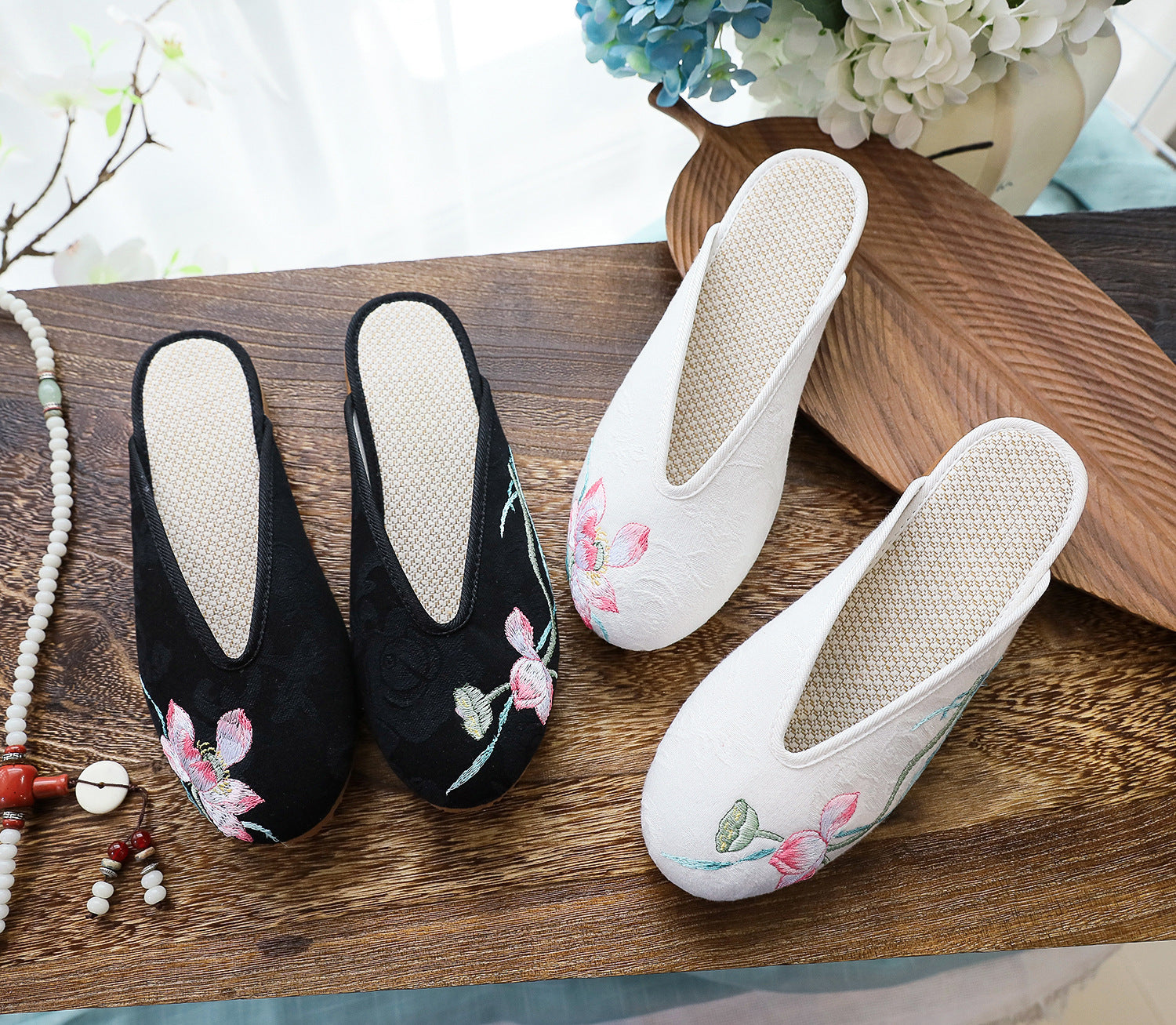 Ελαφριές καλοκαιρινές παντόφλες με κομψό κεντητό σχέδιο. Ιδανικές για καθημερινή χρήση στο σπίτι, προσφέρουν άνεση και παραδοσιακό ύφος σε ένα μοντέρνο σύνολο.