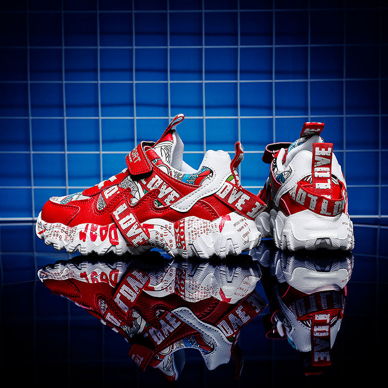 Ξεχωριστά sneakers με εντυπωσιακό comic σχέδιο και έντονες λεπτομέρειες LOVE. Συνδυάζουν στυλ και άνεση, χάρη στην αντιολισθητική σόλα και το ανατομικό πάτημα. Κλείσιμο με σκρατς και κορδόνια για σταθερή εφαρμογή. Κατάλληλα για καθημερινή χρήση και δραστήριες εμφανίσεις.