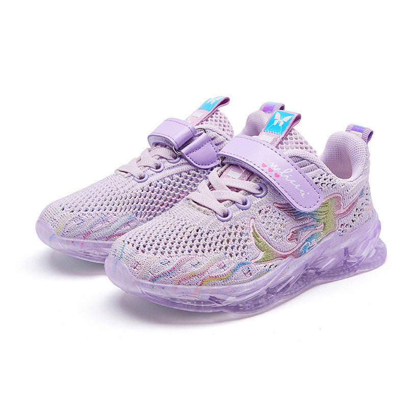 Αναπνεύσιμα και ελαφριά αθλητικά παπούτσια με εντυπωσιακό σχέδιο δεινόσαυρο στο πλάι. Διαθέτουν πλεκτό άνω μέρος που προσφέρει άνεση και ευελιξία στην κίνηση, ενώ η διαφανής σόλα προσθέτει μοντέρνο στυλ και σταθερότητα στο περπάτημα. Ιδανικά για καθημερινή χρήση και δραστηριότητες.