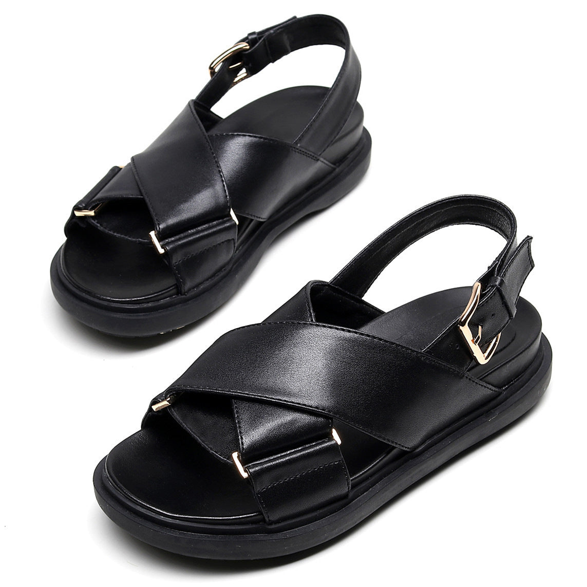 Ανανεώστε το καλοκαιρινό σας στυλ με αυτά τα δερμάτινα σανδάλια με μοντέρνο χιαστί σχεδιασμό. Το φαρδύ λουρί και η ρυθμιζόμενη μπαρέτα προσφέρουν σταθερότητα και άνεση, ενώ η minimal γραμμή τους τα καθιστά ιδανικά για καθημερινή χρήση.