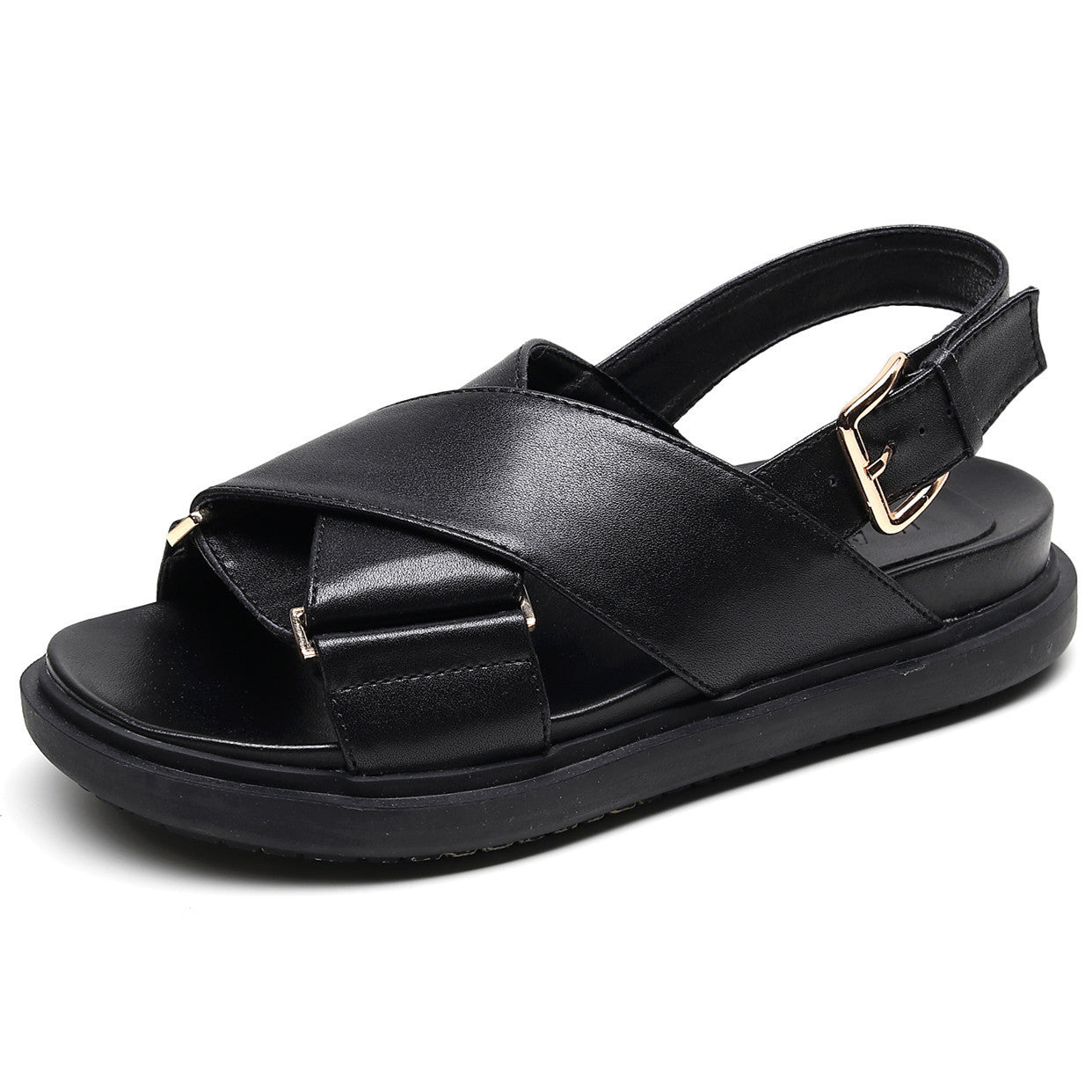 Δερμάτινα Σανδάλια με Χιαστί Λουριά & Μπαρέτα